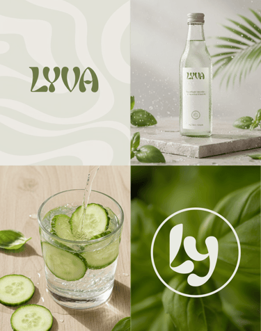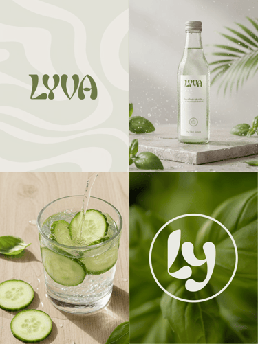 Identité fraîche, végétale et premium axée sur la pureté et la simplicité. Logo organique, palette de verts doux et direction artistique basée sur la transparence et la sérénité. Déclinaisons graphiques, variations visuelles et mockups produits.